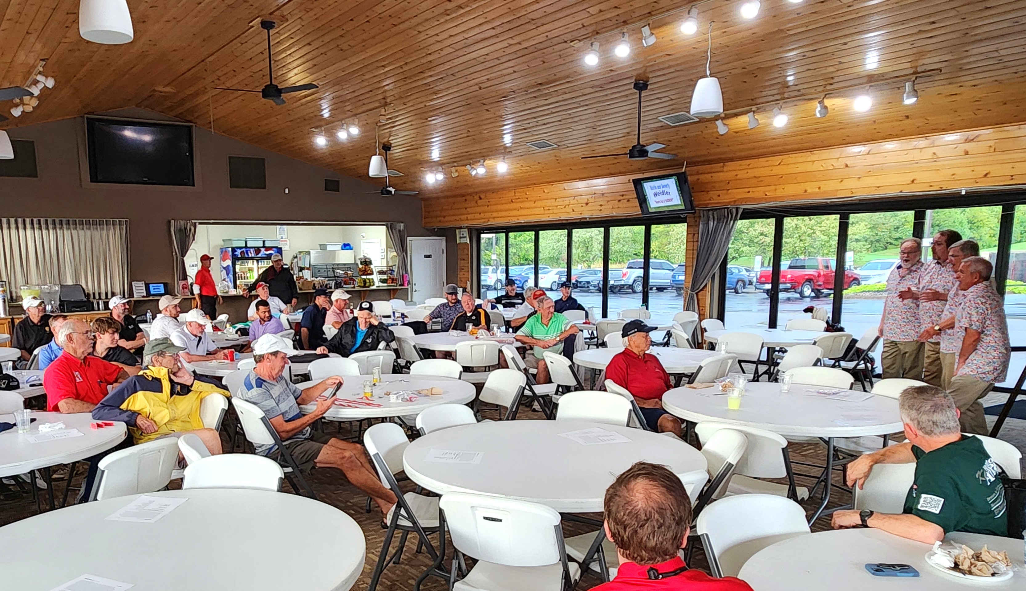 By Co-chair John Erwine The 19th hole is a well-known tradition, originated long ago; relax with a beverage or two, brag about your game -- or not. What happened? Apparently, Mother Nature had already scheduled an event for the day, and Heart of America and its golfing buddies just had to work around it. ![]() Thankfully, around 11 a.m., golfers started to appear. By noon it was pretty much a normal beautiful day for golf. All were having a good time. Then, about 4 p.m., with foursomes having only one or two holes left to play, clouds started drifting in, it got almost dark, then it suddenly came down with vengeance. So, everyone cranked their carts full throttle and came speeding back to the clubhouse, fully drenched, for a wonderful smoked barbecued brisket and pulled chicken buffet at their favorite 19th hole. Just another great day of golfing and comradeship. ![]() This again was a year that we had so many things to be thankful for. We are so fortunate to have those foursomes and sponsors that make the Heart of America Barbershop Chorus' Golf Scramble our largest fundraiser each year. I believe this year might have been one of the largest prize donations we have had. Donations fund the raffle sales, which are also a large part of our success. We owe a huge "thank you" to not only our players, but to all our sponsors. Why? Because every cent of these funds goes to our bottom line to help support, strengthen and share our singing passion. It also demonstrates their belief in what we do. A huge recognition goes to: -- Double Eagle Sponsor: Bob and Jane Rutherford -- Eagle Sponsors: Greg & Lisa Howard; In Harmony Therapeutic Massage; Jerry & Alane Shapiro -- Hole Sponsors: Our own HOA members, and/or those solicited by them. (These additional 16 sponsors donated no less than $100 each, and we value them as much as any other.) ![]() HOA's very own Swing Shift quartet provided their much-enjoyed barbershop singing. They are always welcome. ![]() Next year is our 20th year of hosting this Golf Scramble Fundraiser! Players and potential players: Make a note in your Day-Timer with a big red 'X' for Thursday, Sept. 17, 2026! Everyone: It's not too early to compile a list of potential players, sponsors (big and small) and volunteers to help make another smooth-running event. I think volunteers have about as much fun as those on the greens. See everyone next year! |